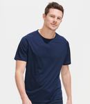 Textured breathable fabric. Self fabric bound collar. Raglan sleeves. Twin needle sleeves and hem. Curved back hem. Suitable for sublimation printing.